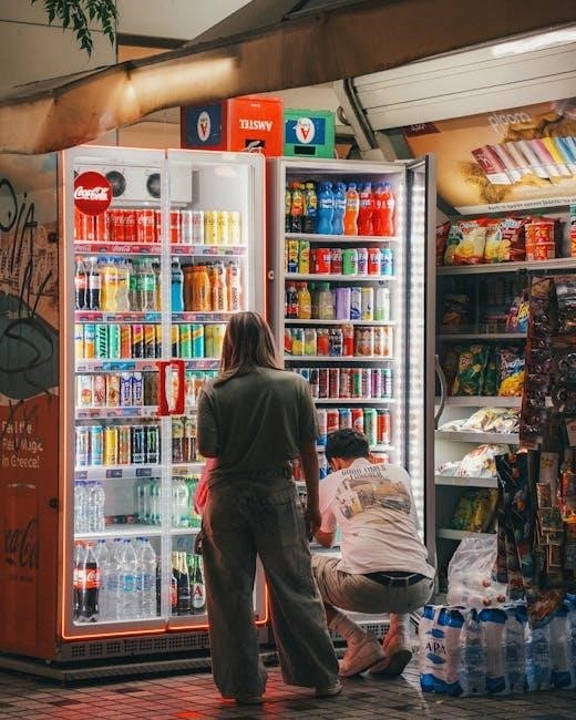 Common codes include “E2” for evaporator fan motor errors, “E3” for compressor malfunctions, and “E5” relating to ice maker problems. The manual provides detailed troubleshooting steps for each code, ranging from simple solutions like checking power connections to recommending professional service; It also warns against attempting repairs without proper knowledge, stressing safety precautions and potential warranty implications.