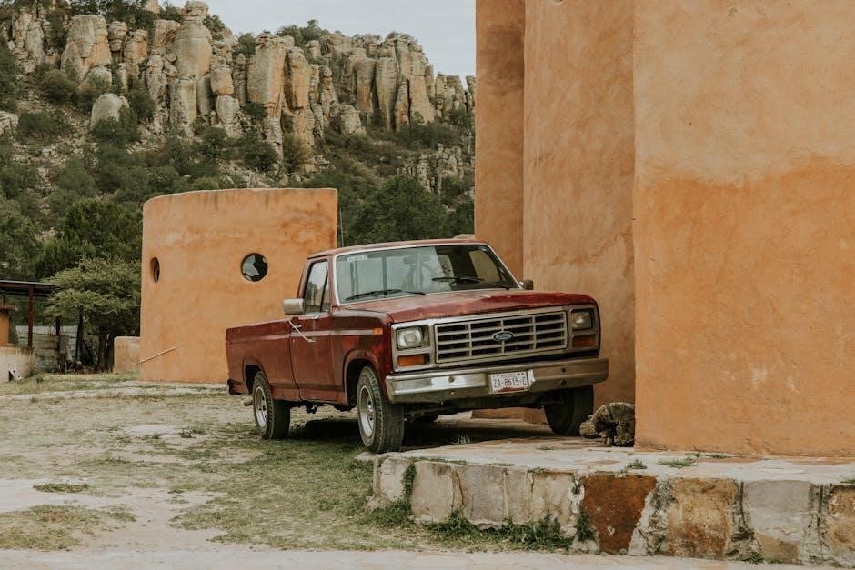 The Ford F-150 manual is a comprehensive guide designed to help owners understand and maintain their vehicle. Available in Spanish as a free PDF, it covers models from 1996 to 2023. This document provides detailed information on operation, maintenance, and troubleshooting. Whether you’re a new owner or a seasoned driver, the manual ensures optimal performance and safety. It’s an essential resource for anyone looking to get the most out of their Ford F-150.